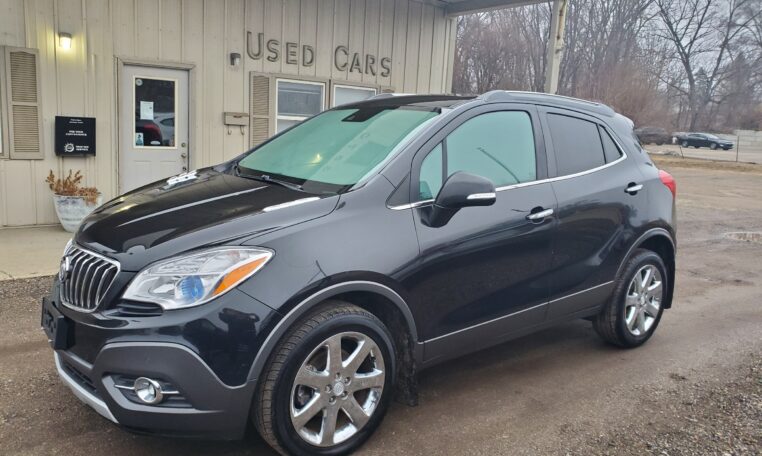 This gorgeous 2014 Buick Encore only has 133k miles, is all-wheel drive and super clean, gets great gas mileage and has leather heated seats and sunroof! It comes with a FREE 3 month/3,000 mile warranty. A full warranty is available with special financing. Don’t miss out – visit our lot today!