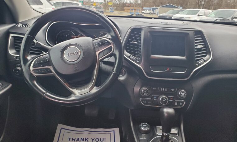 This super clean 2019 Jeep Cherokee Latitude is 4-wheel drive and gets great gas mileage! For you peace of mind, it comes with a FREE 3 month/3,000 mile warranty. A full warranty is available with special financing. Don’t miss out – visit our lot today!